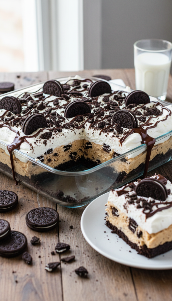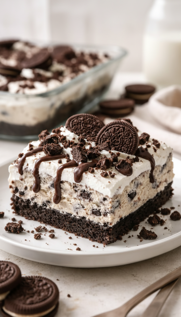 The magic of this recipe lies in its layers: crushed Oreo cookies, fluffy whipped cream, and rich chocolate flavors that come together into a perfectly balanced bite. It’s the kind of dessert that’s perfect for hot days, last-minute guests, or when you simply want something sweet without the hassle.