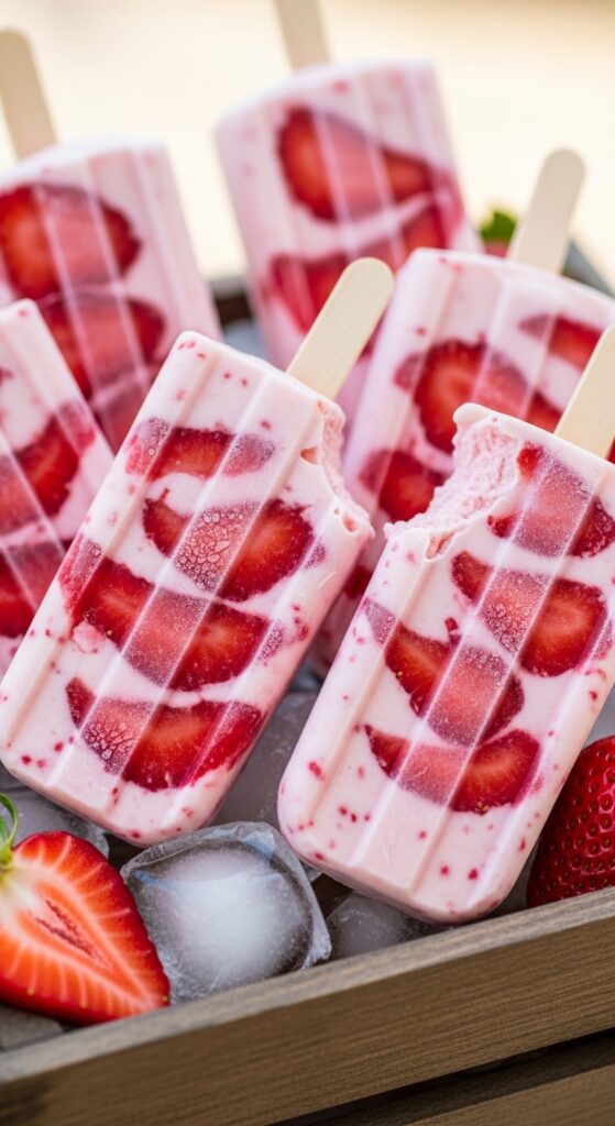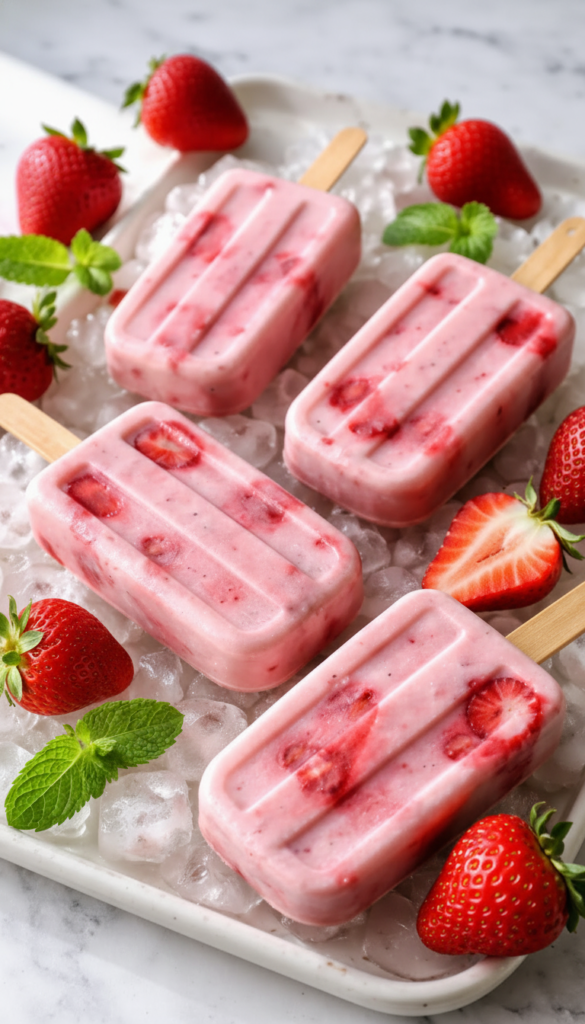- Layered Popsicles: Alternate layers of strawberry puree and yogurt for a striped effect.