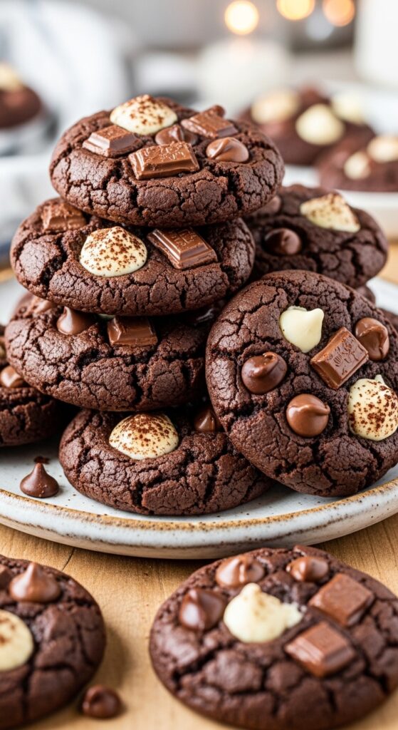 Once you master this recipe, these cookies will become a go-to for chocolate cravings and special occasions alike. Rich, fudgy, and triple-chocolate perfection—these cookies truly embody chocolate lover heaven 🍫✨.