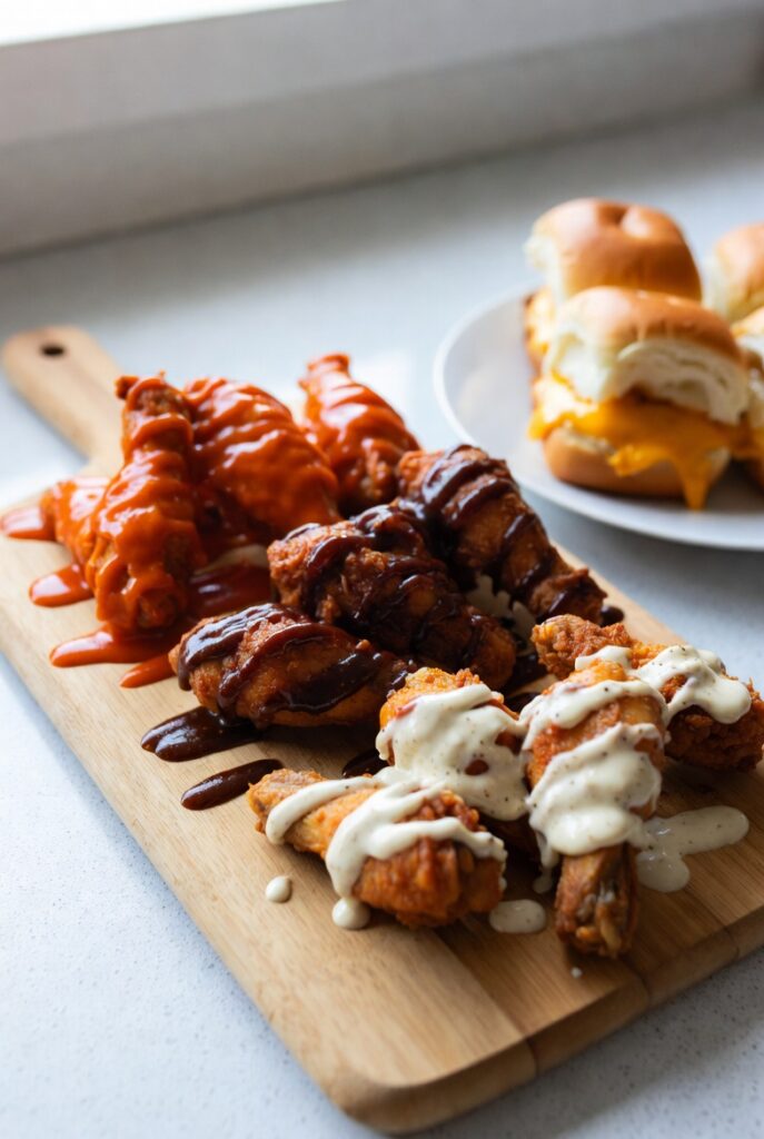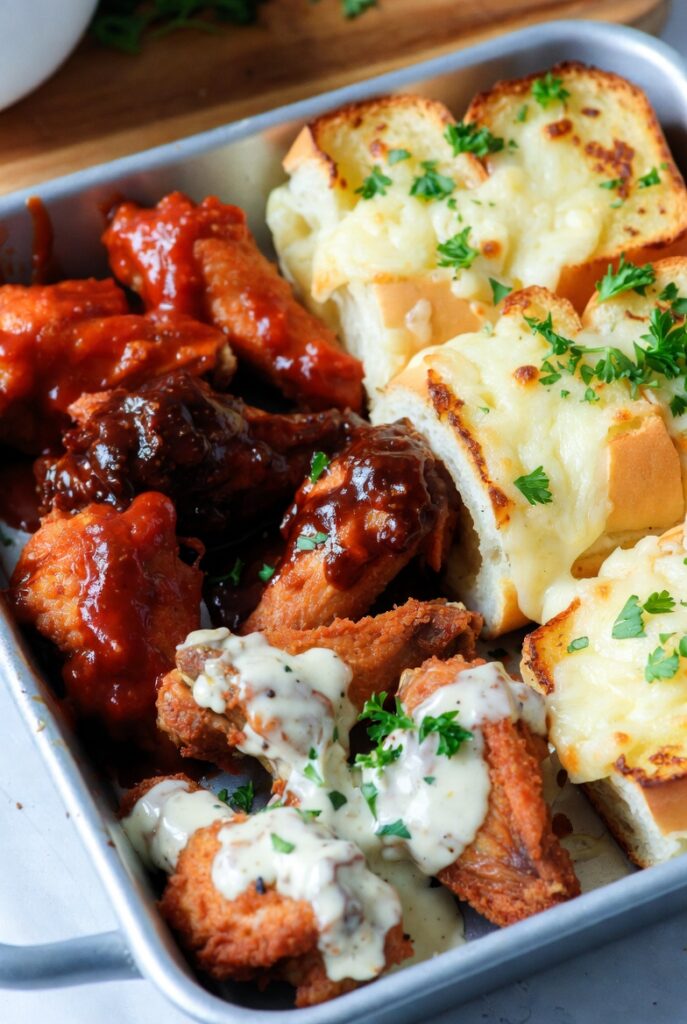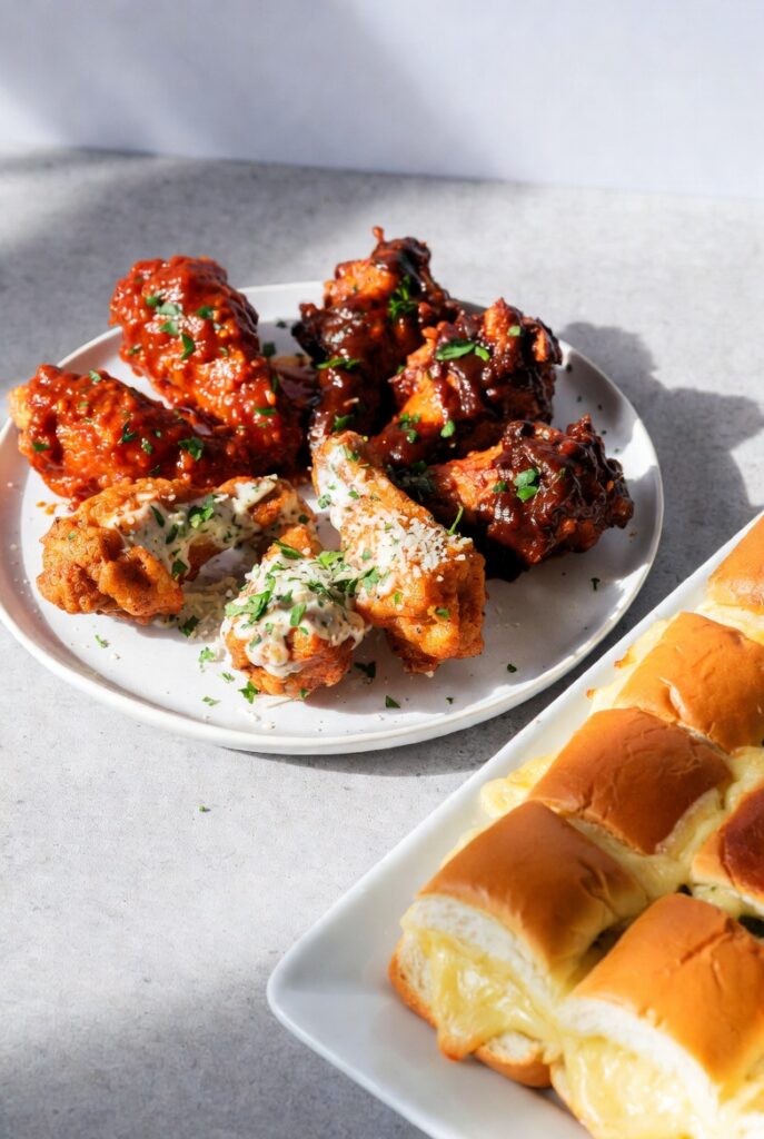- Crucial: Do not let the wings “Soak” in the sauce. The moisture in the sauce will eventually penetrate the “Alkaline Crust.” Toss, coat, and serve immediately to maintain the “Shatter-Snap.”